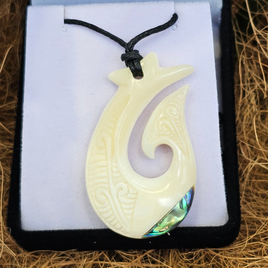 Sold outBone Pendant with Paua - Hei Matau