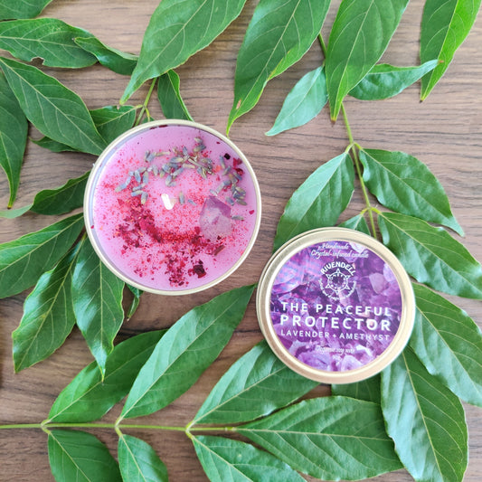 "The Peaceful Protector" Lavender + Amethyst Crystal-infused Tin Candle