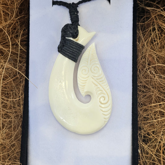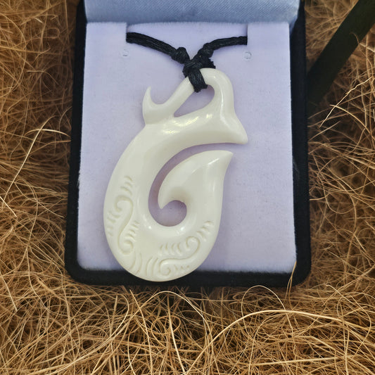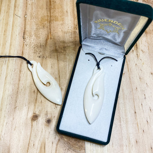 Handcarved Fish Hook Bone Carving Pendant - Hei Matau