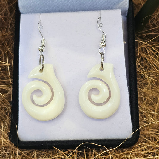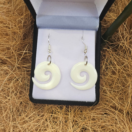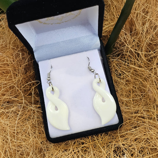 Handcarved Twist Bone Carving Earrings - Pikorua