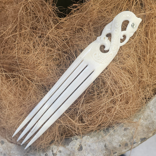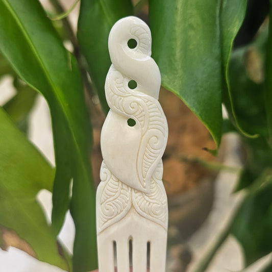 Handcarved Traditionally Bound Fish Hook Bone Carving Pendant - Hei Matau