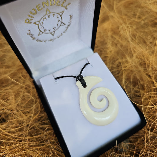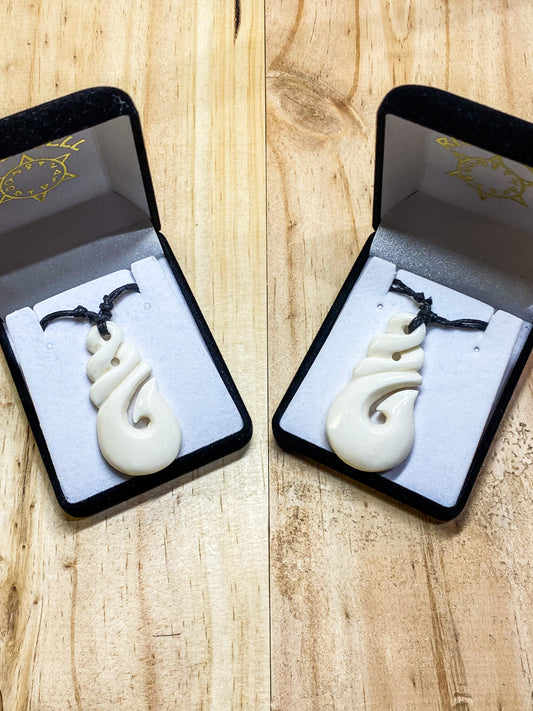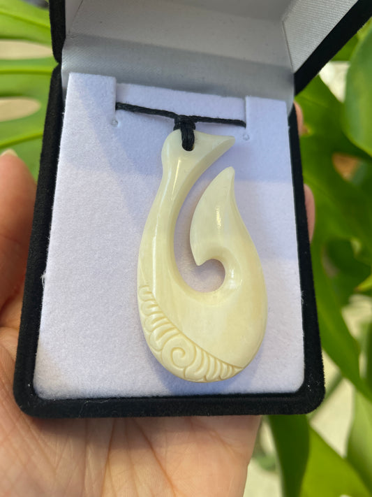Handcarved Bone Fish Hook Pendant - Hei Matau