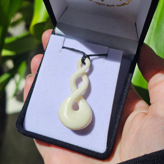 Handcarved Twist Bone Carving Pendant - Pikorua