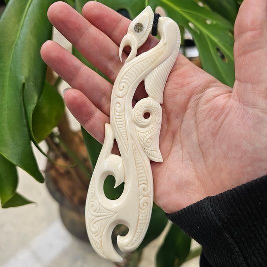 Handcarved Bone Fish Hook Pendant - Hei Matau