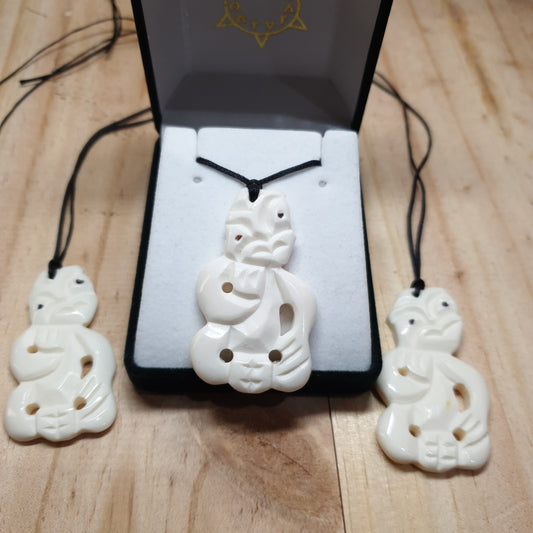 Handcarved Triple Twist Bone Carving Pendant With Paua - Pikorua
