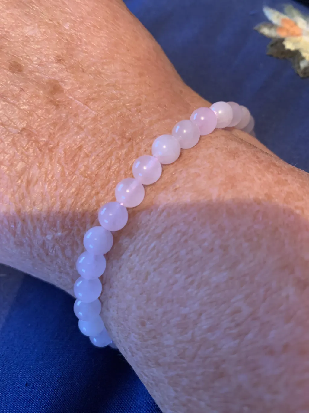 Beautiful Rose Quartz Round Bead Crystal Bracelet.