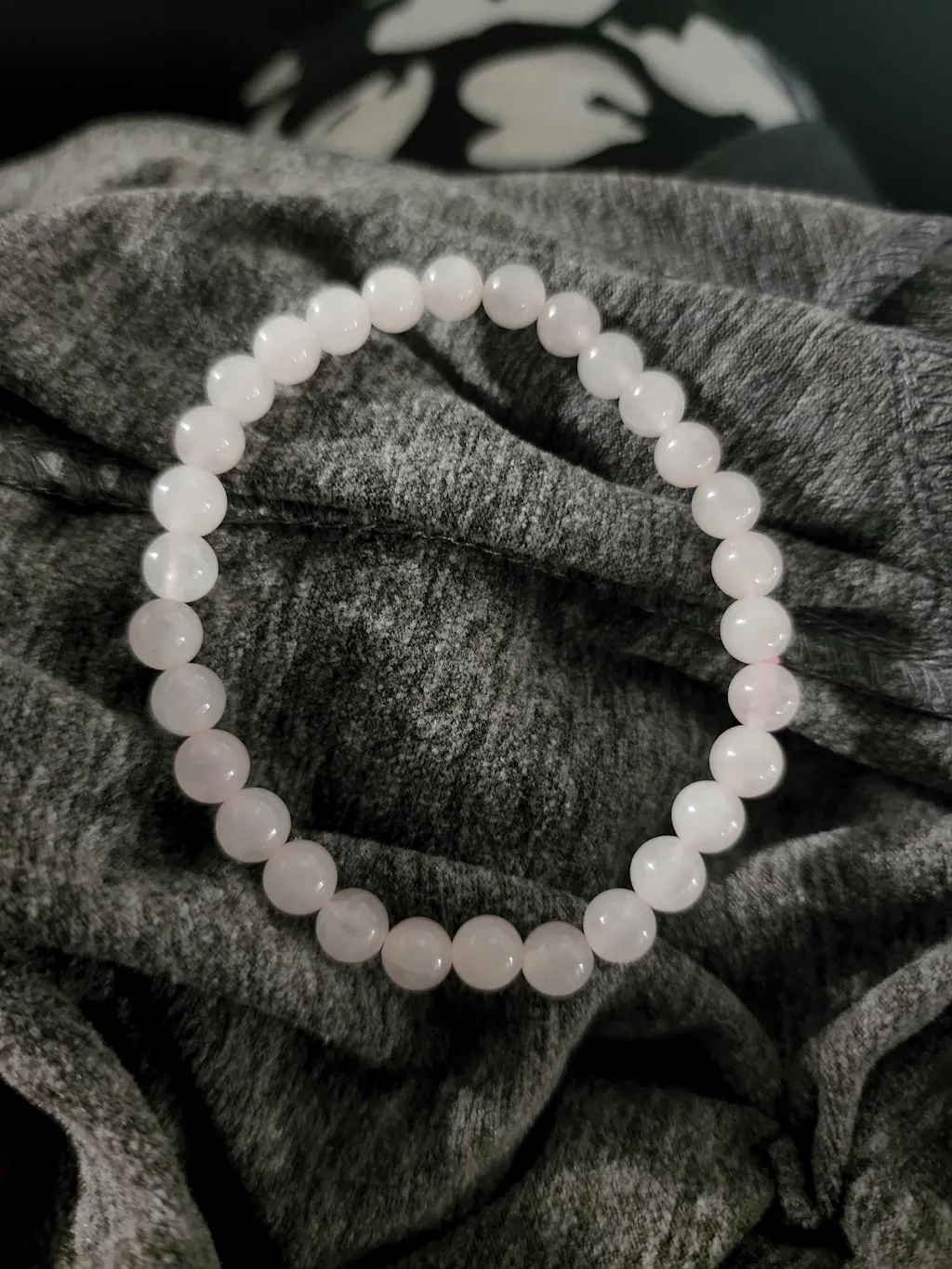 Perfectly round beads of Rose Quartz strung together by an invisible elastic cord to make this versatile accessory perfect to compliment your personal style, or as a gift for someone special.