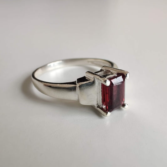Garnet Emerald-Cut 925 Sterling Silver Ring