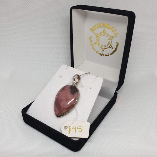 Reverse Teardrop Rhodonite 925 Sterling Silver Pendant