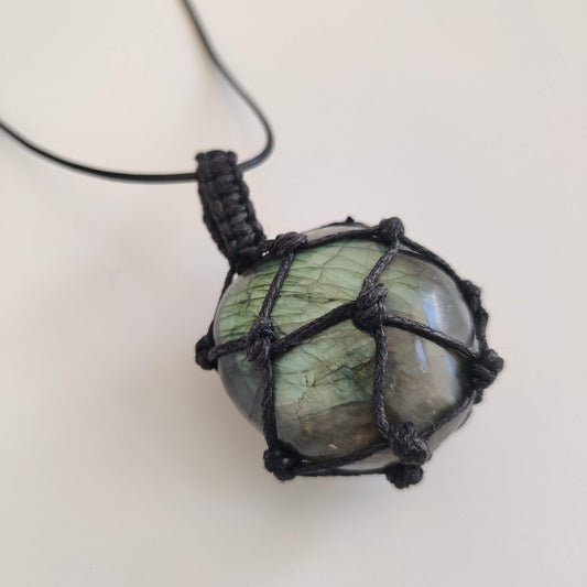 Labradorite Polished Stone Cord-Wrapped Necklace