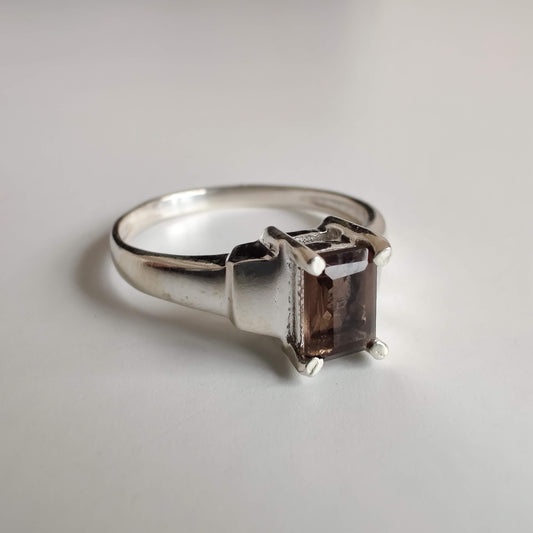 Smoky Quartz Emerald-Cut 925 Sterling Silver Ring