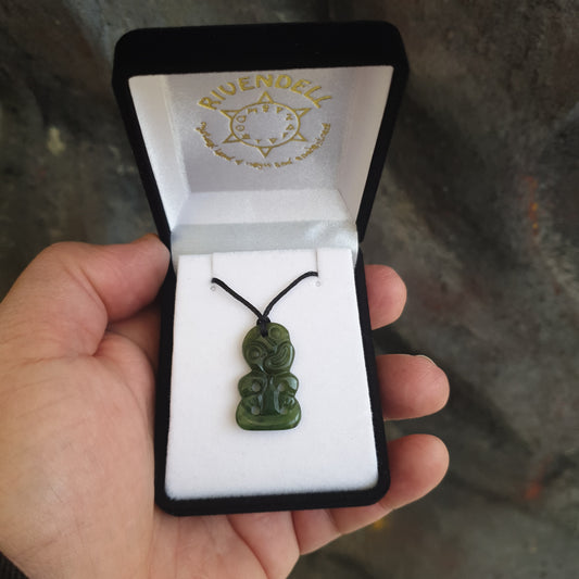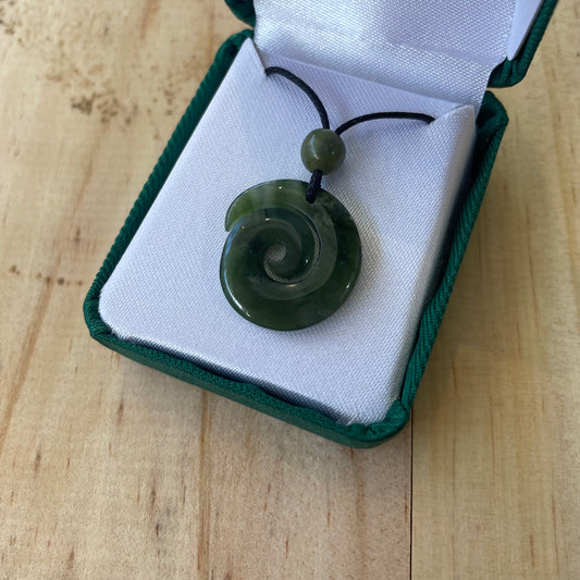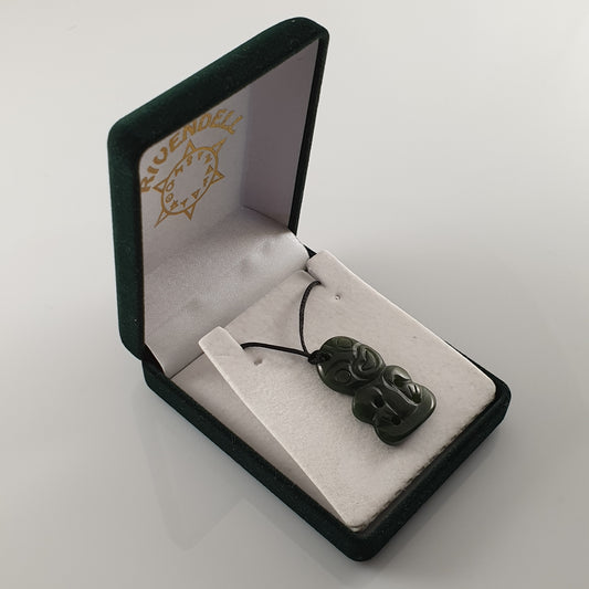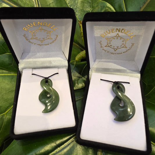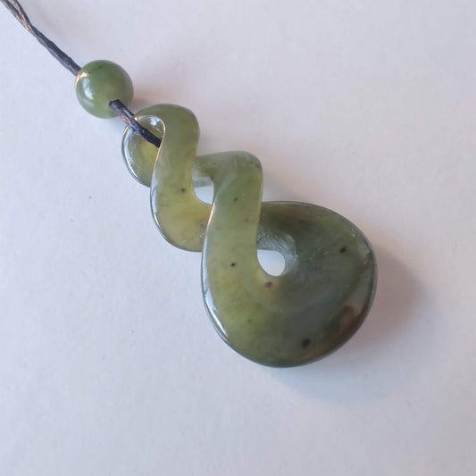 Greenstone Twist Pikorua Greenstone Pendant - Double Twist with Bead