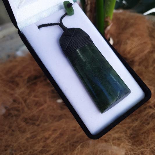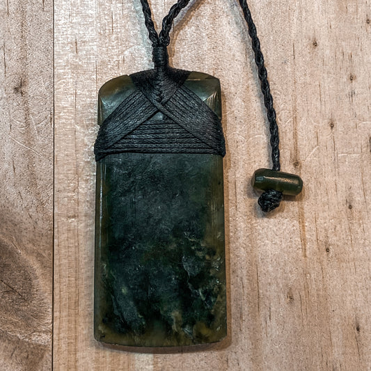 Greenstone Toki Pendant Oblique Cut 80x30mm
