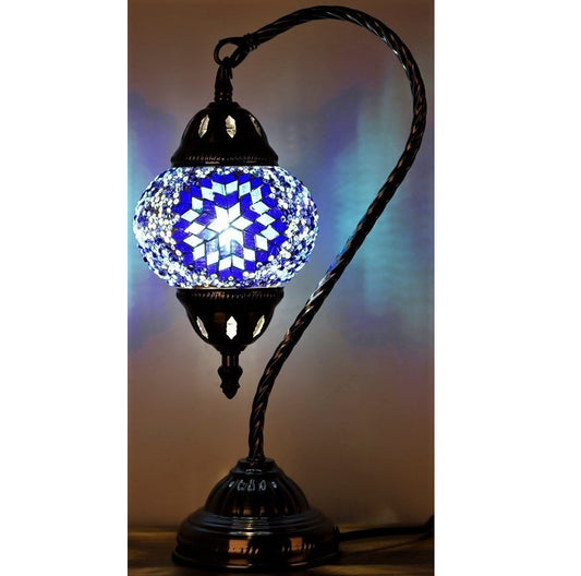 Blue Sunburst Swan Neck Turkish Mosaic Lamp