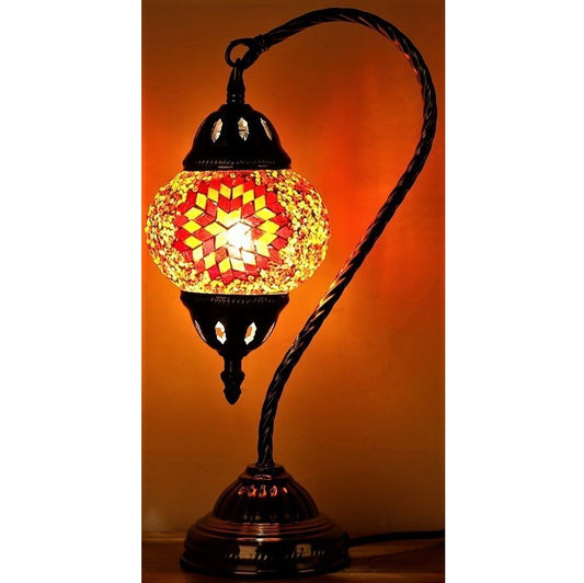 Red Sunburst Swan Neck Turkish Mosaic Lamp