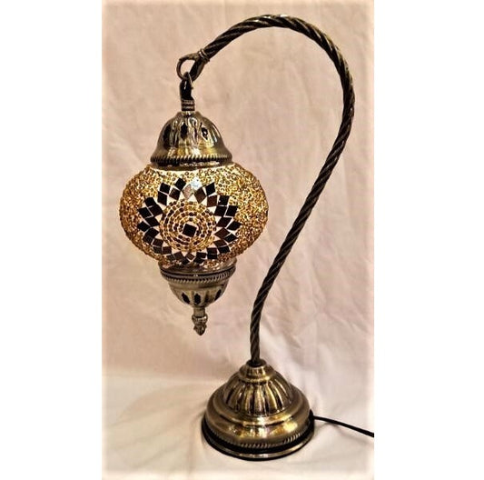 Black and Gold Swan Neck Turkish Mosaic Lamp