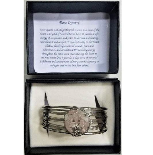 Rose Quartz Copper Crystal Tree on Wooden Base