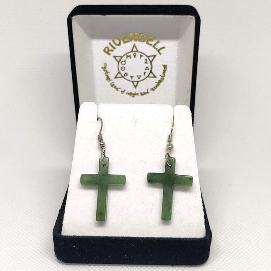 Sold outGreenstone Cross Earrings