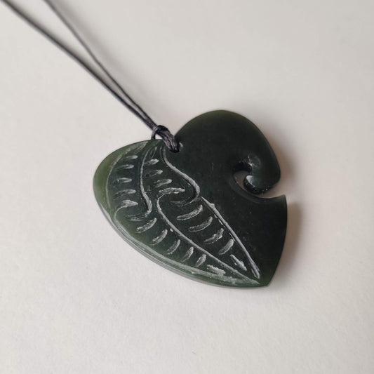 Fish Hook Greenstone Pendant - Manaia
