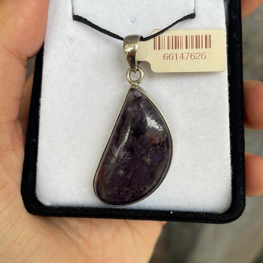 Oblique Teardrop Charoite 925 Sterling Silver Pendant