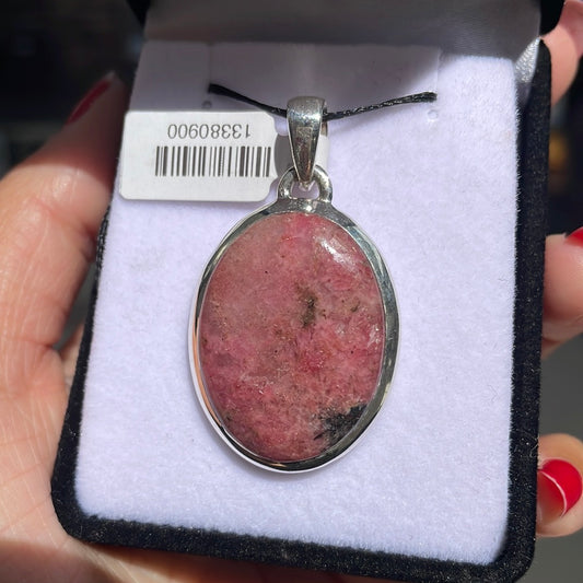 Oval Rhodonite 925 Stirling Silver Pendant