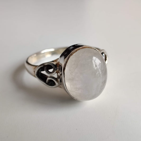 Moonstone Oval 925 Sterling Silver Ring with Heart Design
