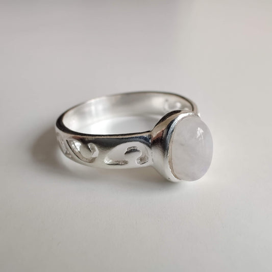 Moonstone Oval 925 Sterling Silver Ring with Koru Design