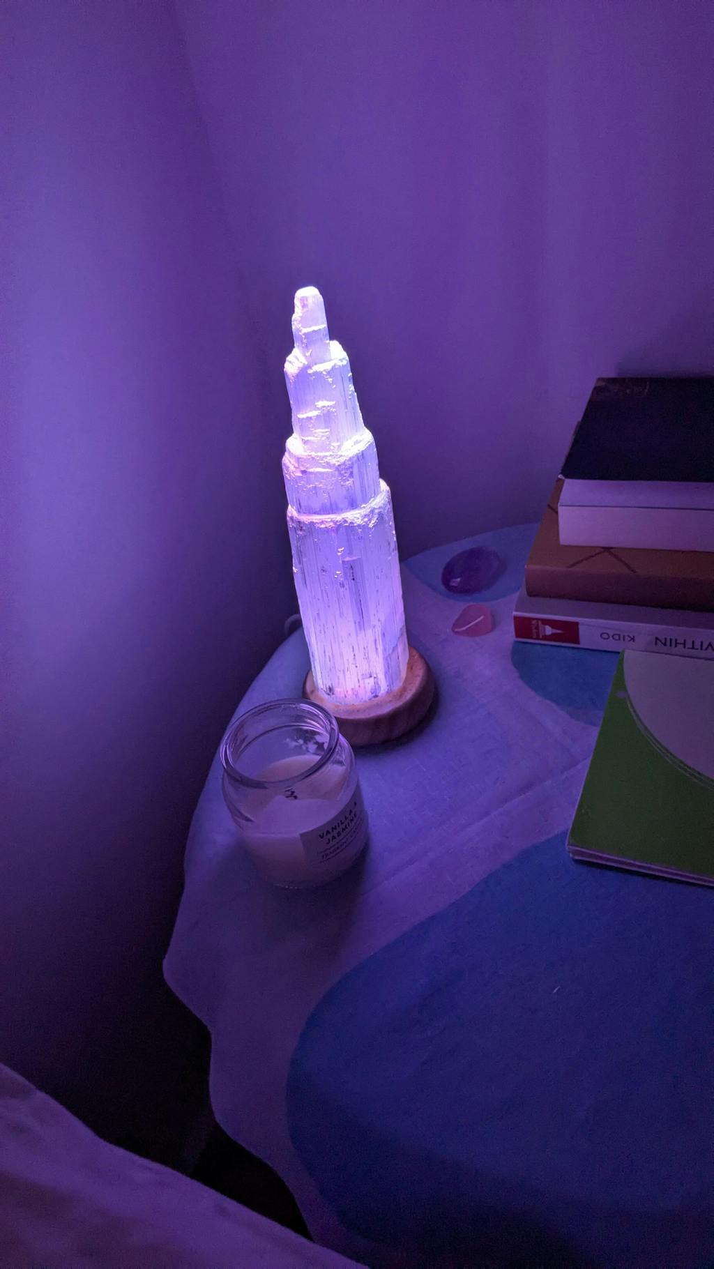 the selenite is really beautiful and glows many colours.