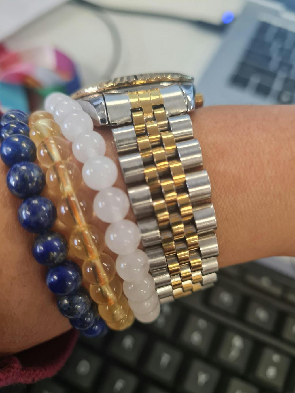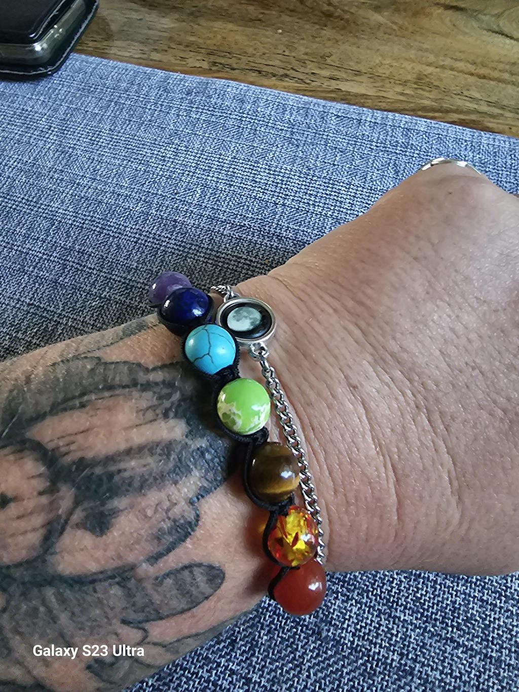 It's a nice bracelet. I like it. It's not as clear as the chip clear quartz on their website but trust this is equally good.